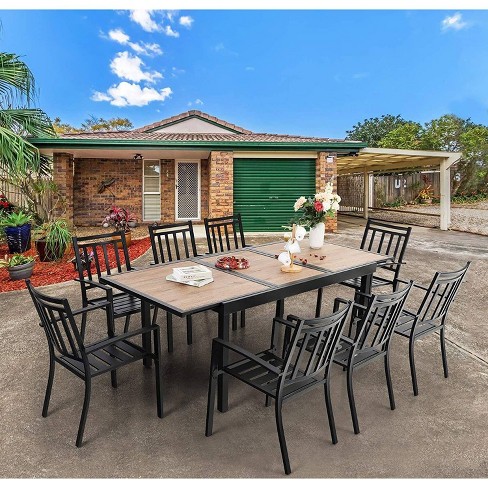 These patio seating sets just wouldn't be complete without every single piece, from the sofas sectionals and patio chairs to patio tables, dining tables, and storage ottomans. Patio coffee tables (24) patio dining tables (40) patio end tables (15) patio folding tables (2) patio table bases (4) patio table tops (3) picnic tables (5) frame material. Phi villa metal outdoor patio dining set, table and 4 chairs set of 5. Walnew 4 pieces patio furniture outdoor furniture outdoor patio furniture set textilene bistro set modern conversation set black bistro set with loveseat tea table for home, lawn and balcony (black) average rating: ( 4.1) out of 5 stars. Cushions leave a little to be desired in terms of overall look, but i'll just look into changing them. 5 out of 5 stars with 8 ratings. Novogratz poolside paulette steel 3 piece patio table and bench set. The cayman cast aluminum large rectangular patio set offers an entire coordinating outdoor dining set in one simple click of a mouse. 95 list list price $399.95 $ 399. The average price for metal patio. Classic black round cast aluminum outdoor patio side table. Finding the perfect outdoor dining set whether you like to enjoy a cozy dinner for two or host an outdoor family feast, choose a patio table and chairs that fit your style: